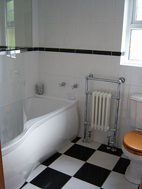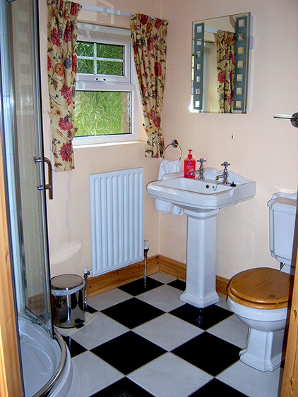 Bedroom 1 is downstairs, has a king size bed with a pocket spring mattress. It is suitable for wheelchair/elderly users and has its own ensuite. The shower is fitted with a safety rail.